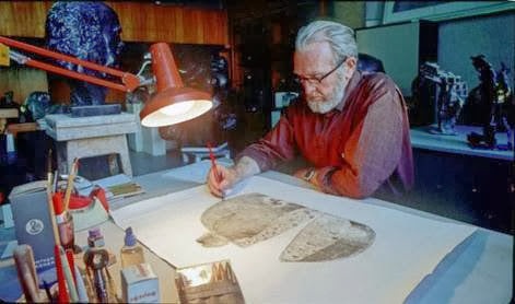 Pablo Serrano - Homenaje a Gaudí (coloreada a mano)