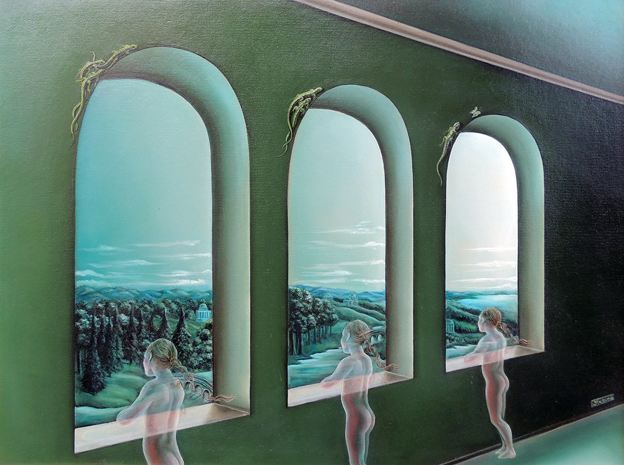 Su obra, entre el surrealismo y el hiperrealismo, destaca por la ilusión espacial y un hipnótico punto de fuga que provoca en el espectador una sensación de déjà-vu.